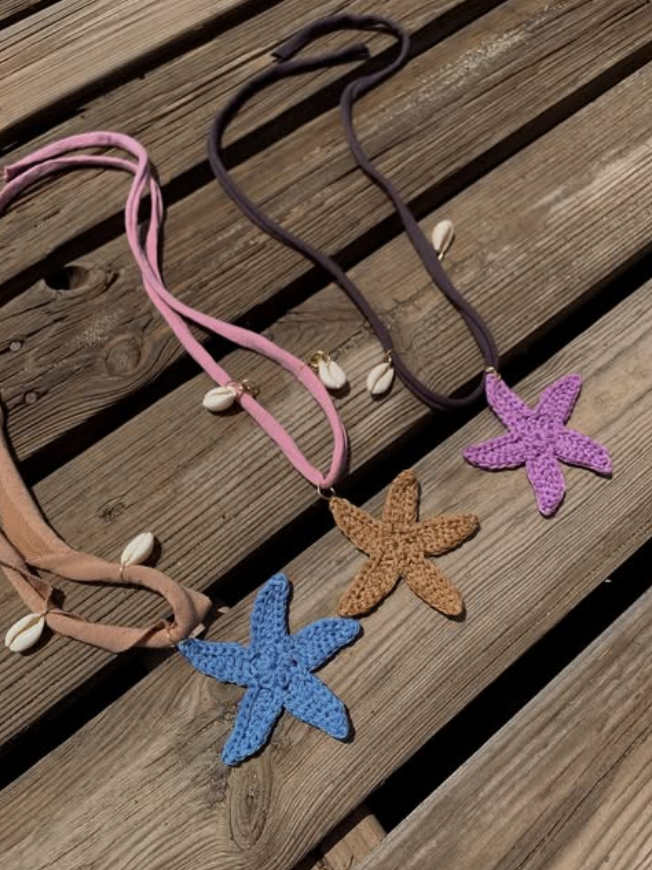 Además de bolsos, HEDA diseña pendientes con formas de estrellas, collares, cinturones y posavasos. Todo sigue una estética coherente, alegre y delicada. Su universo creativo es íntimo, femenino y profundamente sensorial.